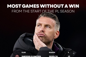 英超历史赛季开局不胜场次纪录: