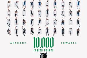 截至发稿时,森林狼球星爱德华兹本场已经得到23分,NBA生涯常规赛总得分突破10000大关。