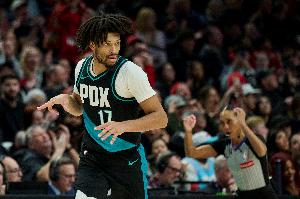 开拓者球员夏普上半场依旧是球队主要得分力量,他也展现不错手感,外线三分也相当准。