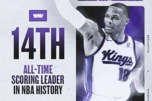 国王官推晒出海报,祝贺威少迎来里程碑。在得分榜上,威少下一个将追逐埃尔文·海耶斯(27313)。