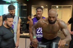 下一篇: 腹斜肌拉伤的里夫斯,在今天湖人队训练后进行三分球练习